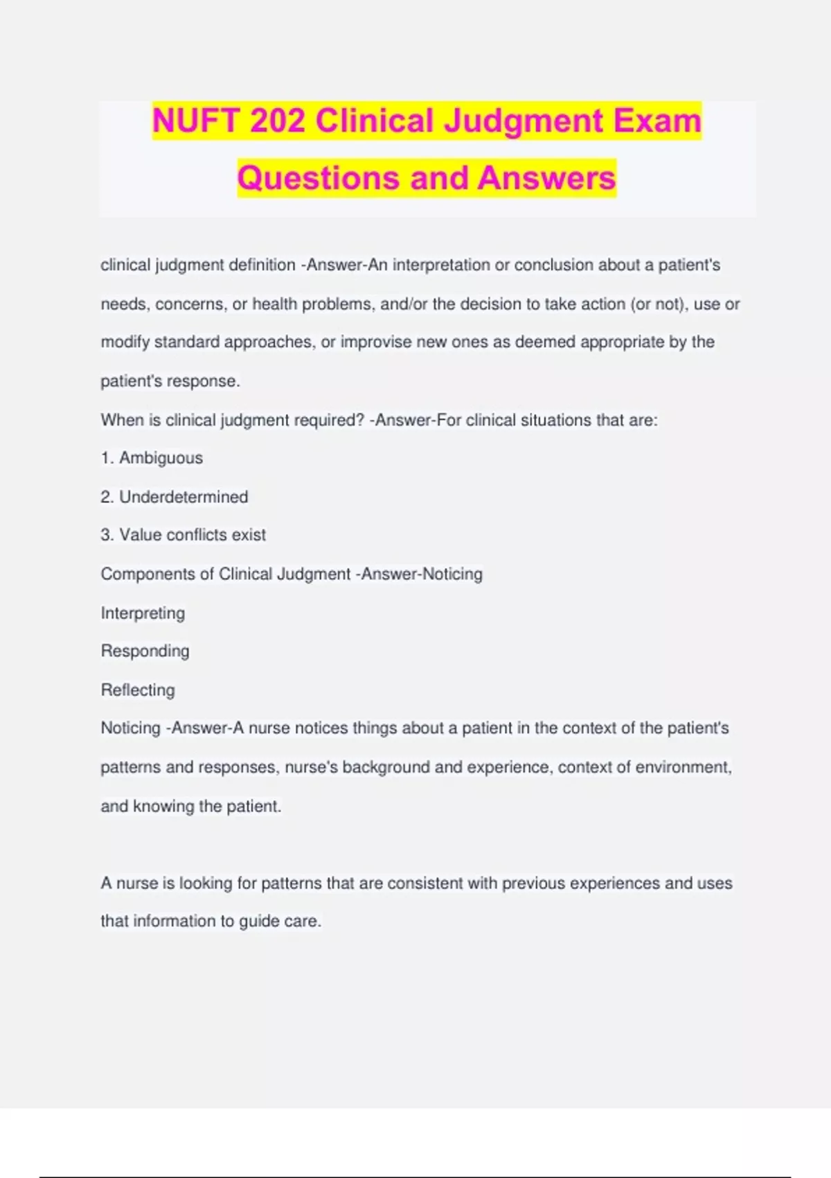 NUFT 202 Clinical Judgment Exam Questions and Answers