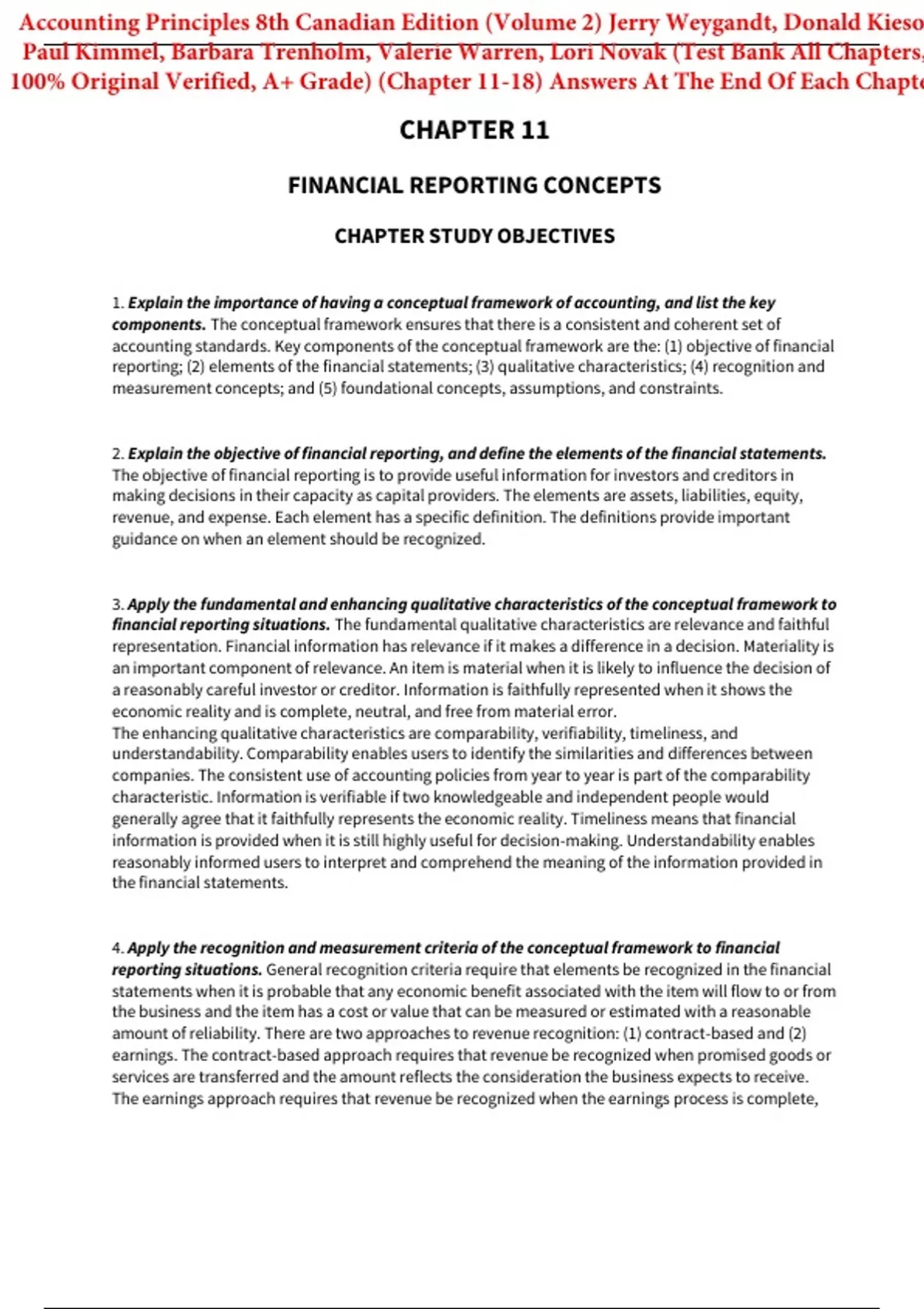 Solutions Manual With Test Bank for Accounting Principles 8th Canadian Edition (Volume 2) By Jerry Weygandt, Donald Kieso, Paul Kimmel, Barbara Trenholm, Valerie Warren, Lori Novak (All Chapters, 100% Original Verified, A+ Grade) (Chapter 11-18)