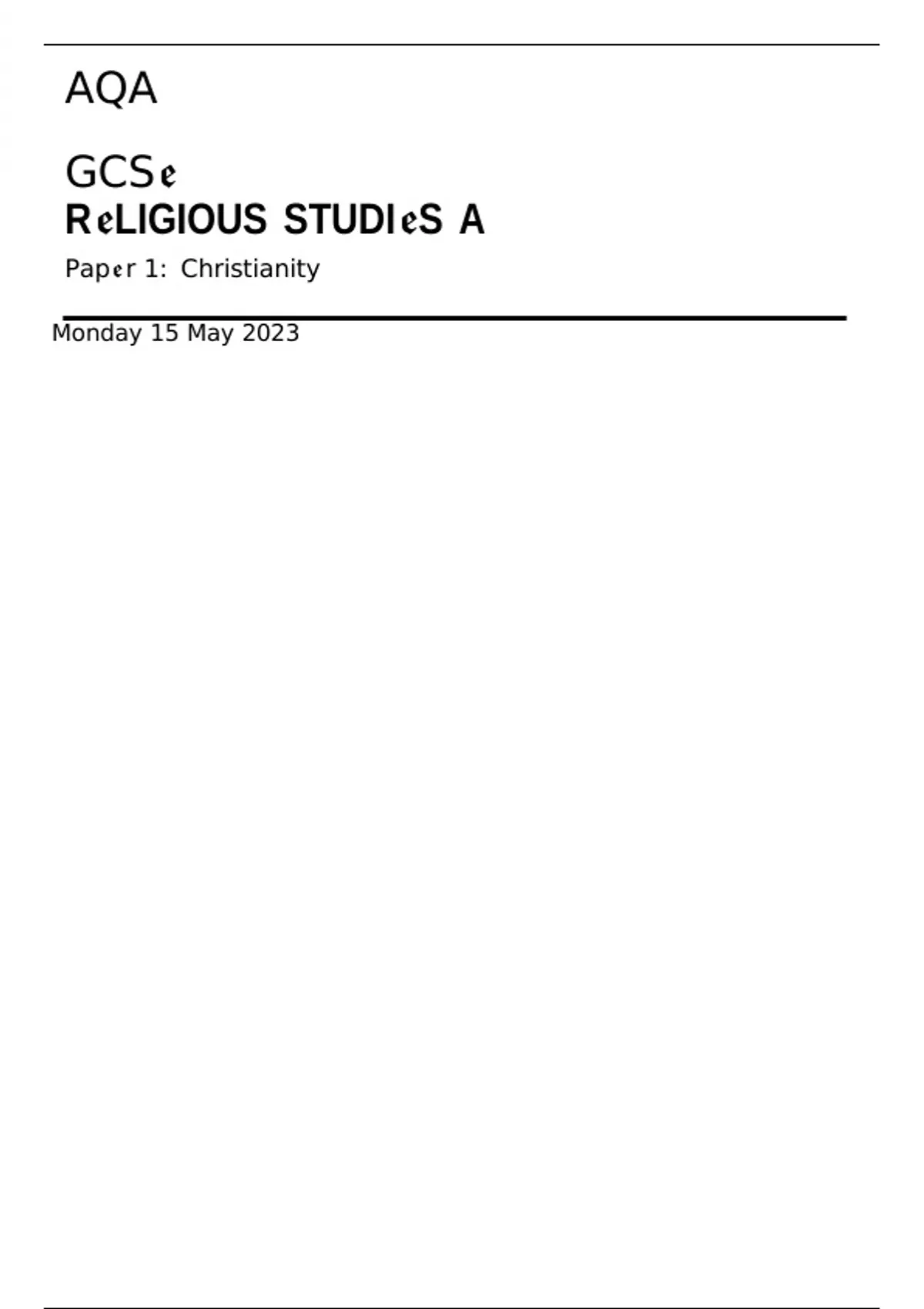 AQA GCSE RELIGIOUS STUDIES A Paper 1: Christianity Monday 15 May 2023 PACKAGE