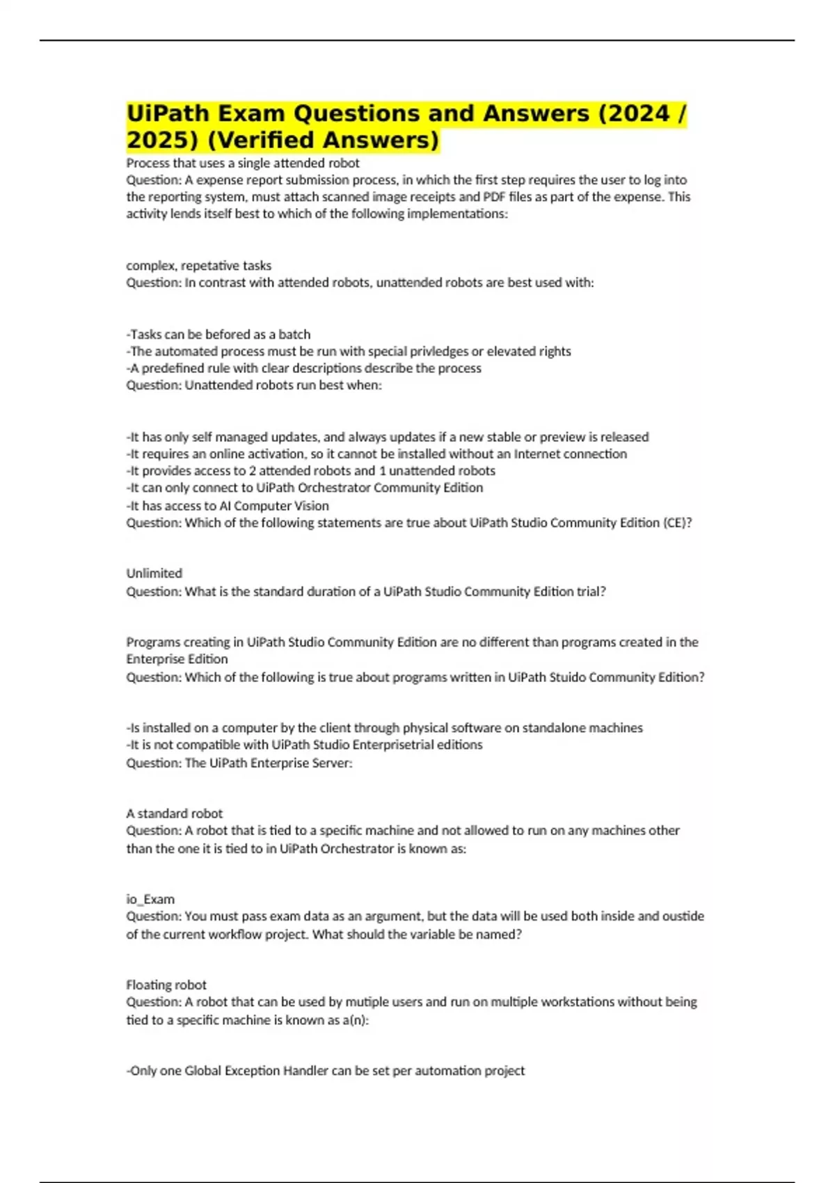 UiPath CERTIFICATION EXAM STUDY SET LATEST BUNDLE PACK SOLUTION (VERIFIED) UiPath CERTIFICATION EXAM STUDY SET LATEST BUNDLE PACK SOLUTION (VERIFIED)