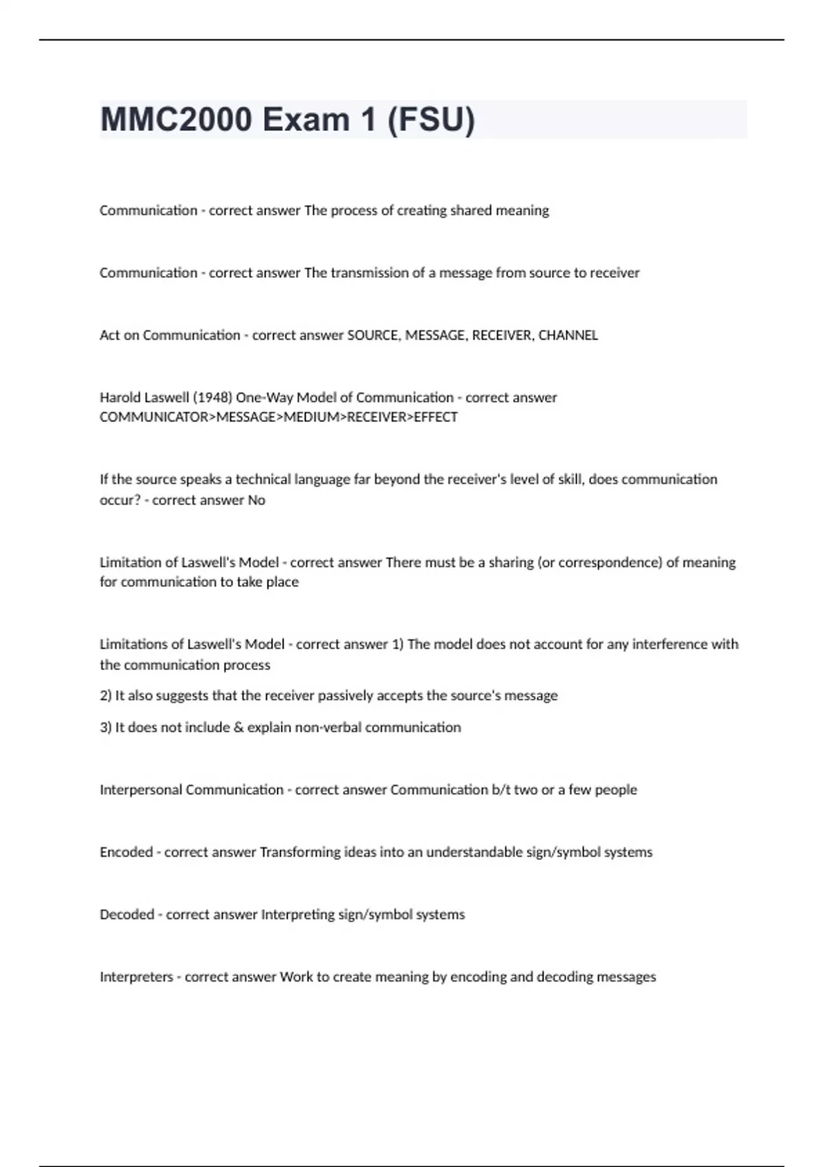 Mmc 2000 Florida State University -MMC 2000 midterm with 100% correct answers