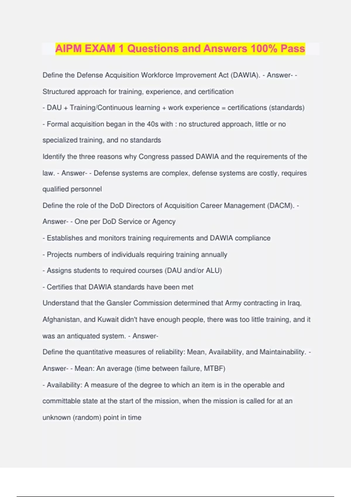 AIPM Exam 1 Exam Questions and Answers 100% Pass