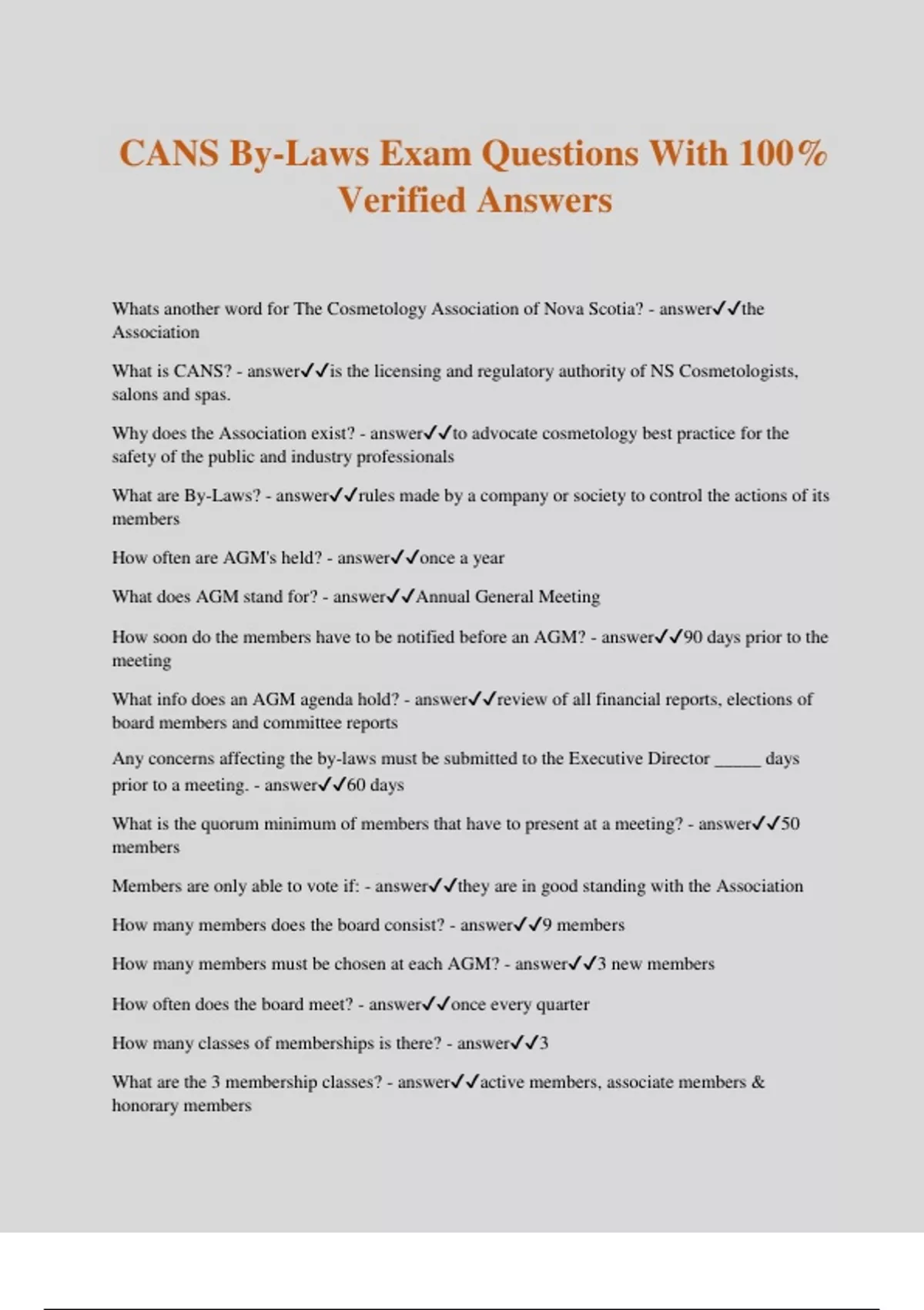 CANS By-Laws Exam Questions With 100% Verified Answers