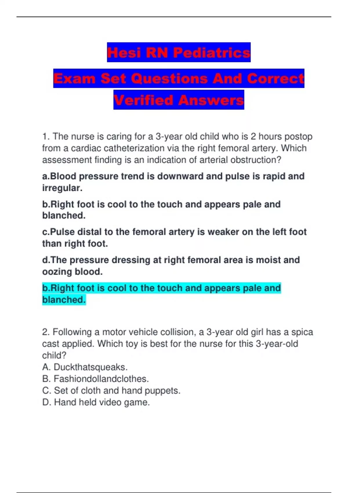 Pediatrics Hesi Exam Set Questions And Correct Verified Answers
