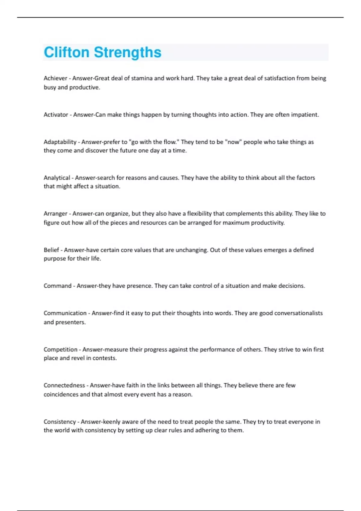 Clifton Strengths questions and answers all are graded A+