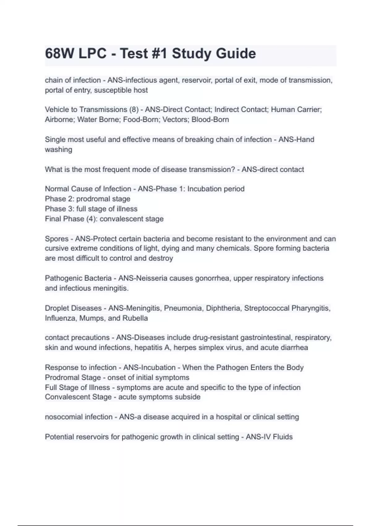 68W LPC - Test #1 Study Guide with 100% correct answers | verified | latest updated 2024