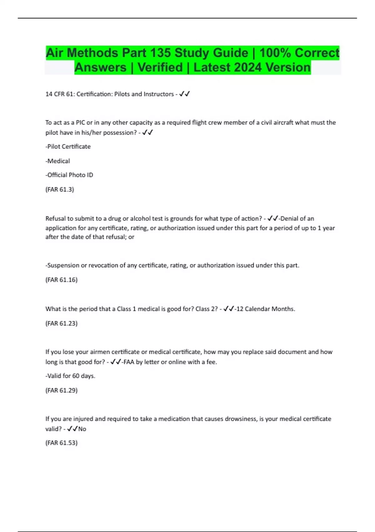 Air Methods Bundled Exams Questions and Answers with Certified Solutions