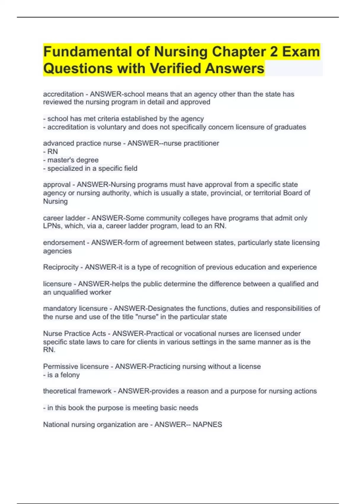 Fundamental of Nursing Chapter 2 Exam Questions with Verified Answers