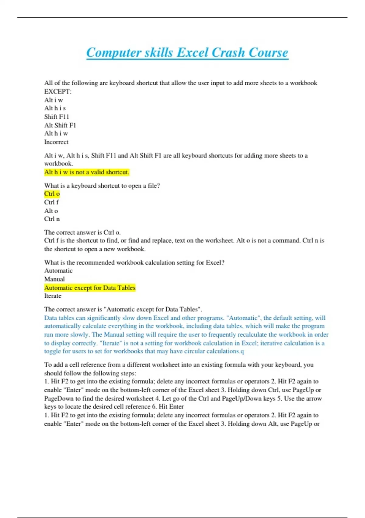 Computer skills Wall Street Prep: Excel Crash Course, Computer skills Excel Crash Course