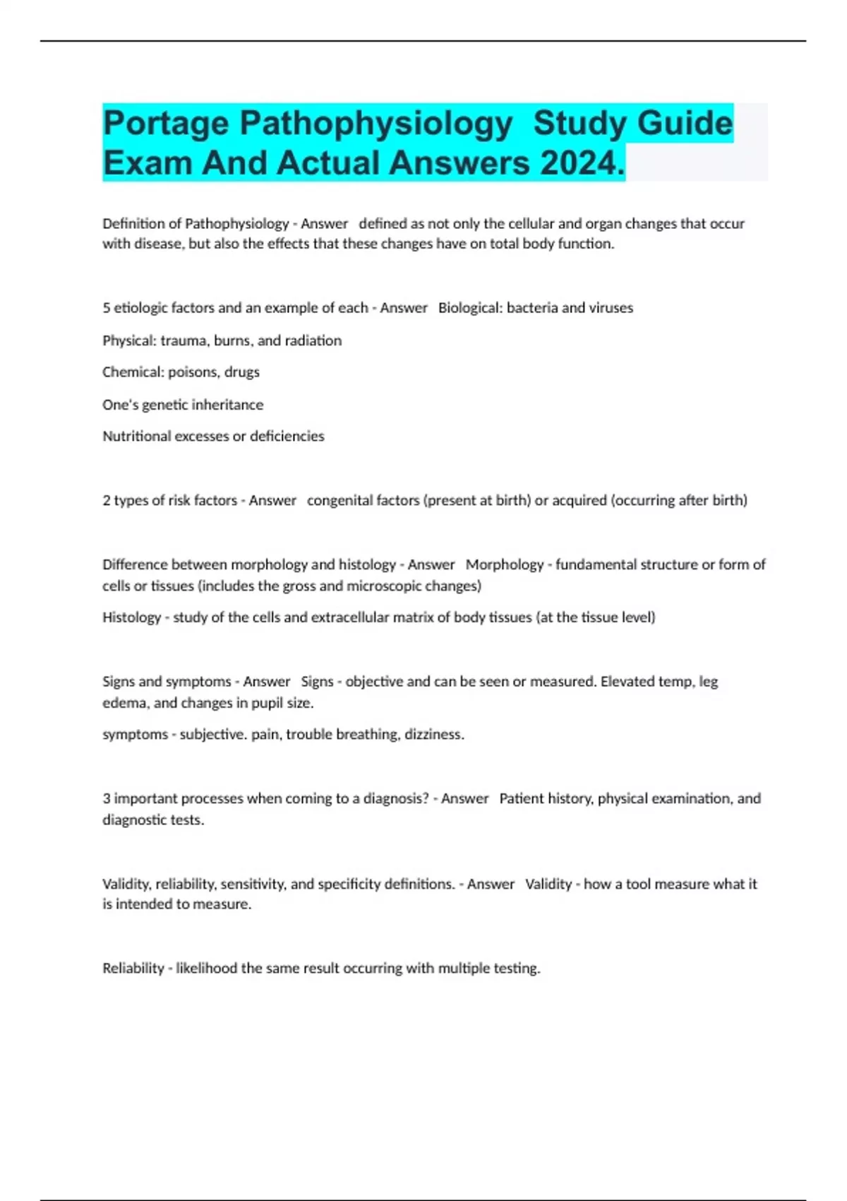 1 Exam (elaborations) Portage Pathophysiology Training Exam With All Quality Solutions 2024. 2 Exam (elaborations) Portage Pathophysiology Module 5 Latest Exam Fully Solved 2024. 3 Exam (elaborations) Pathophysiology Module 7 Practice Exam And Actual Answers 2024. 4 Exam (elaborations) Portage Patho Final Exam Well Answered 100% 2024. 5 Exam (e