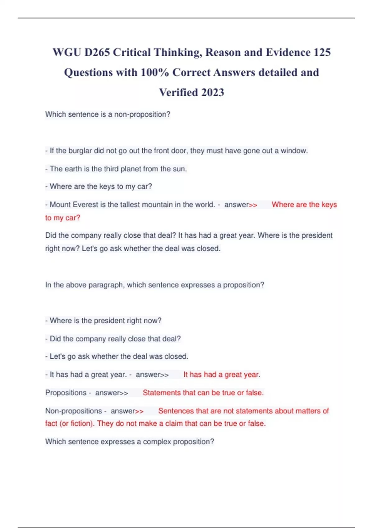 WGU D265 CRITICAL THINKING AND EVIDENCE OBJECTIVE ASSESSMENT WGU D265 EXAM ACTUAL EXAM QUESTIONS AND CORRECT ANSWERS LATEST EXAM