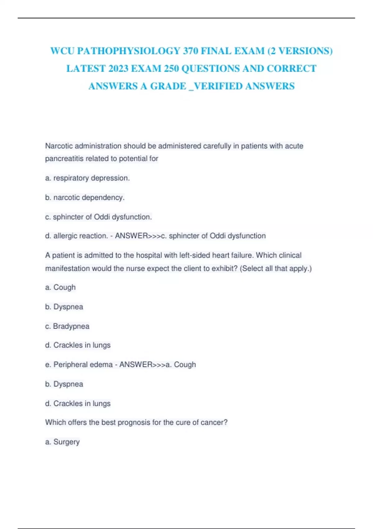 WCU 370 PATHOPHYSIOLOGY FINAL EXAM TESTBANK QUESTIONS AND CORRECT DETAILED ANSWERS AGRADE