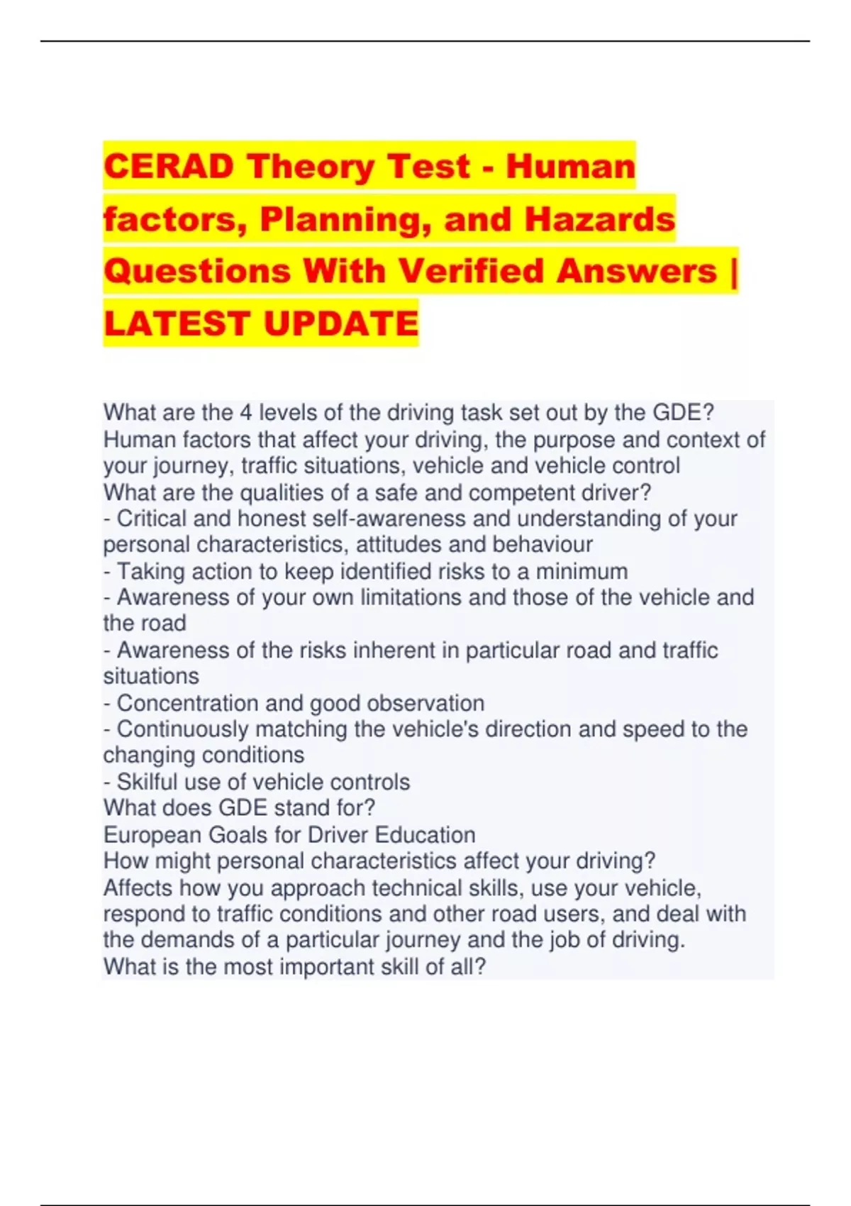 Bundle for CERAD Theory Exam Question With Answers Latest Update |VERIFIED