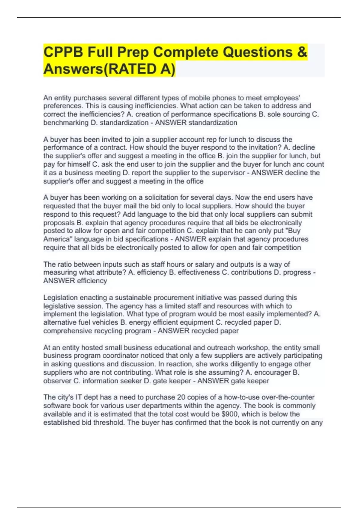 CPPB Exam Prep Complete Questions & Answers(RATED A)(COMPLETE FULL PACK SOLUTIONS!!!)EXAM BUNDLECPPB Exam Prep Complete Questions & Answers(RATED A)(COMPLETE FULL PACK SOLUTIONS!!!)EXAM BUNDLECPPB Exam Prep Complete Questions & Answers(RATED A)(COMPLETE FULL PACK SOLUTIONS!!!)EXAM BUNDLECPPB Exam Prep Complete Questions & Answers(RATED A)(COMPLETE