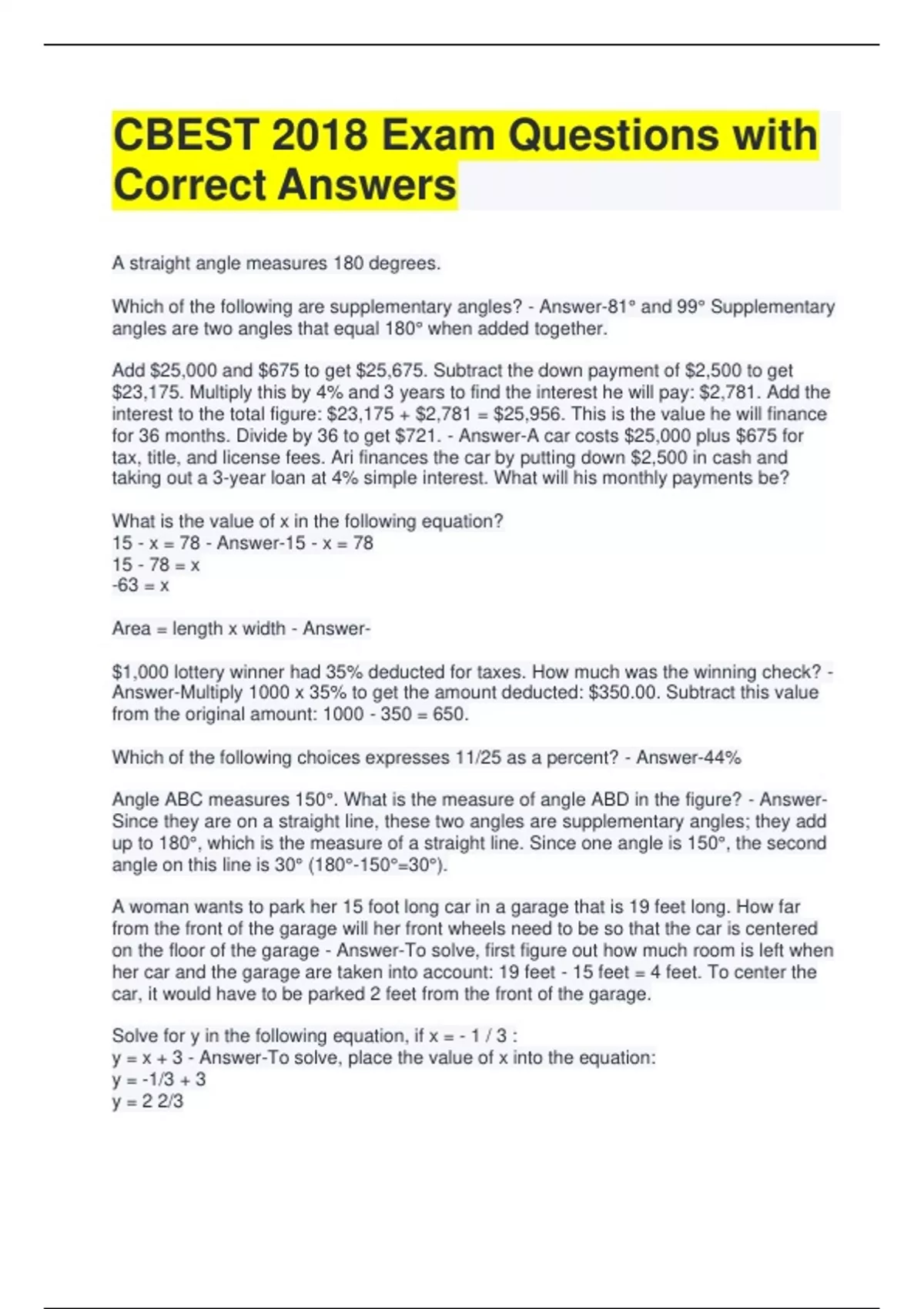 Exam (elaborations) CBEST Vocabulary Test with Complete Solutions 2 Exam (elaborations) CBEST Test with Complete Solutions 3 Exam (elaborations) CBEST Reading Exam Questions with Correct Answers 4 Exam (elaborations) CBEST Practice Test Questions with Correct Answers 5 Exam (elaborations) CBEST Math Test Questions with Correct Answers 6 Exam (