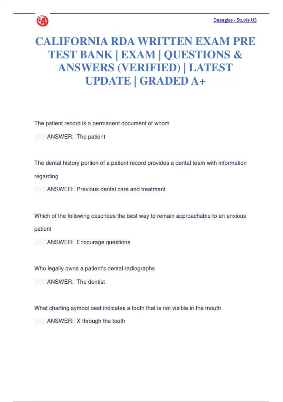 California RDA written exam Correctly Answered Questions Pack | UpToDate