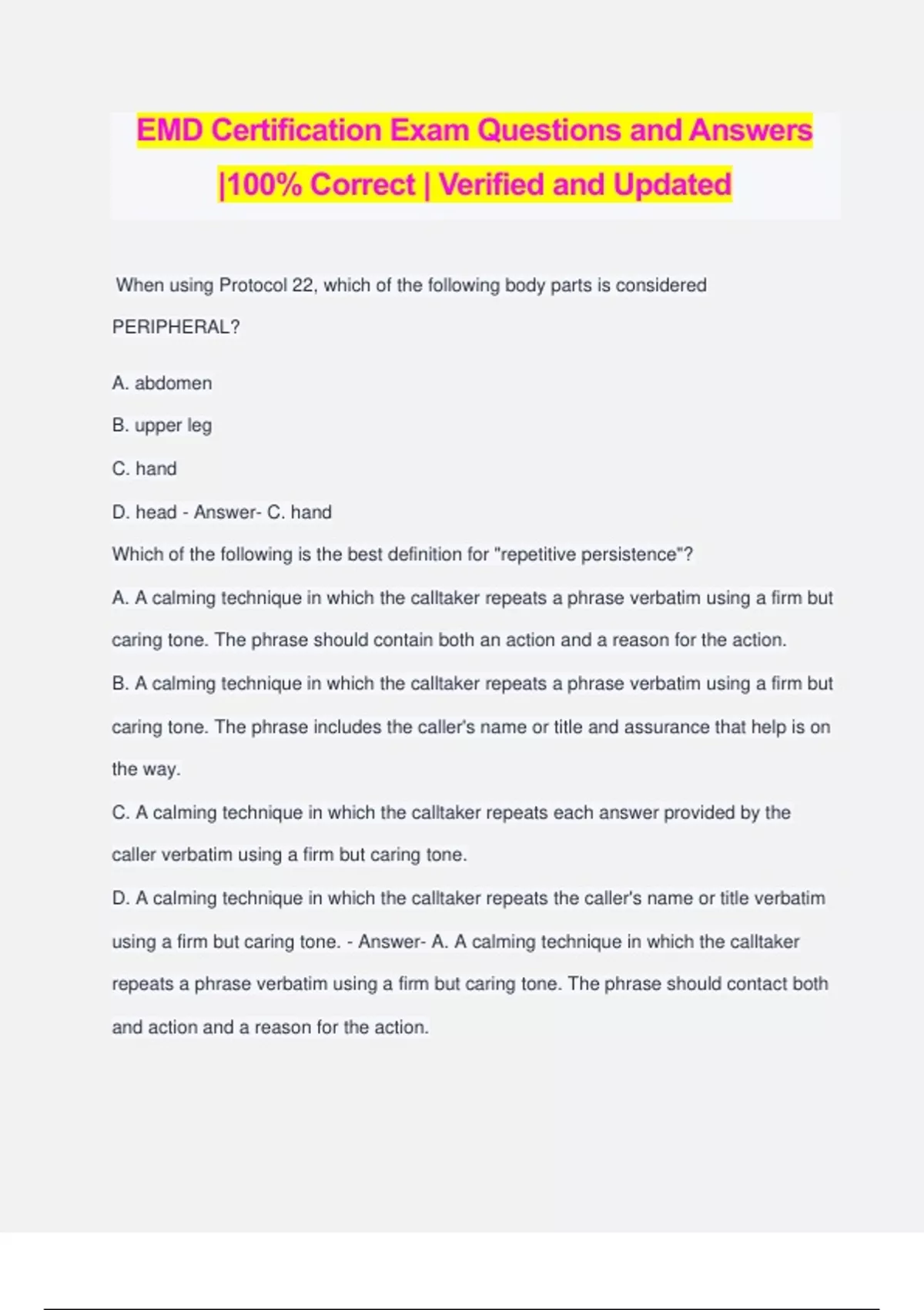 EMD- Emergency Medical Dispatch Bundled Exams Questions and Answers 100% Verified and Updated | Graded A
