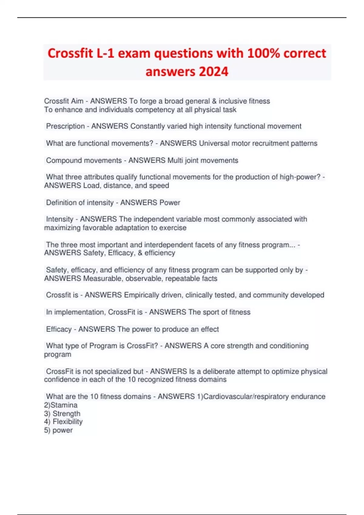 BUNDLE FOR Crossfit L1&2 Exam QUESTIONS AND ANSWERS: UPDATED EXAM GRADED A+