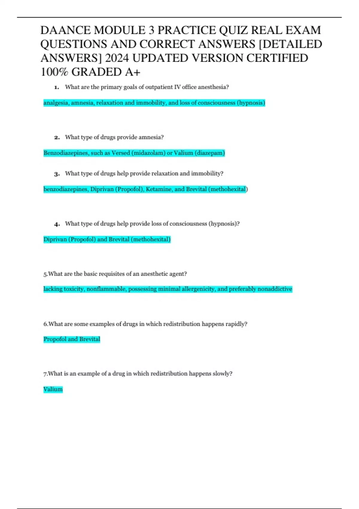 DAANCE MODULE 1,2,3,4,5 DENTAL ANESTHESIA ASSISTANT NATIONAL CERTIFICATION EXAMINATION DAANCE EXAM STUDYGUIDE QUESTIONS AND CORRECT ANSWERS [DETAILED ANSWERS] 2024 UPDATED VERSION CERTIFIED 100% GRADED A+ 2 Exam (elaborations) DAANCE CERTIFICATION REAL EXAM QUESTIONS AND CORRECT ANSWERS [DETAILED ANSWERS] 2024 UPDATED VERSION CERTIFIED 100% GRADED