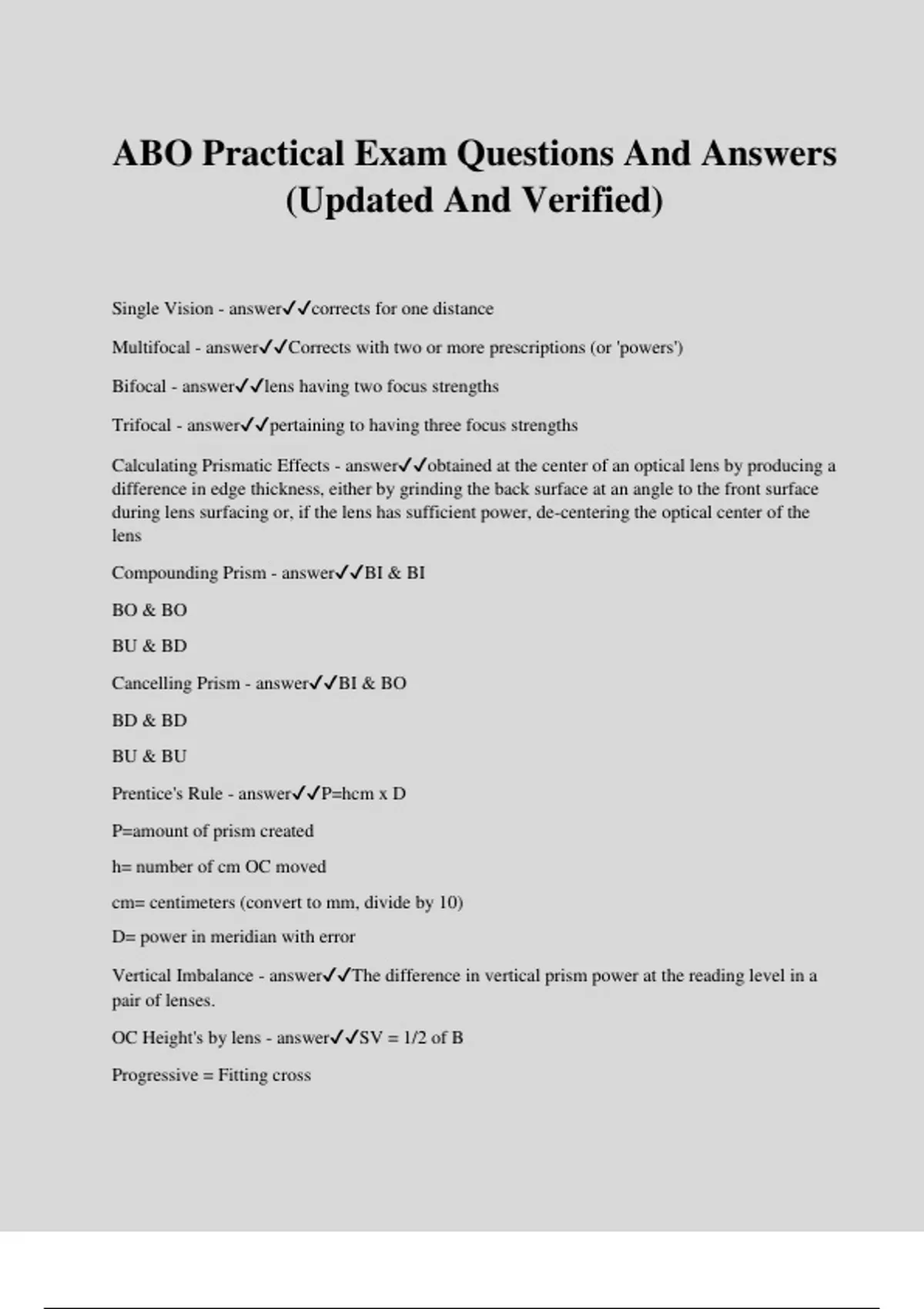 ABO Exam Package Deal With Complete Solutions.