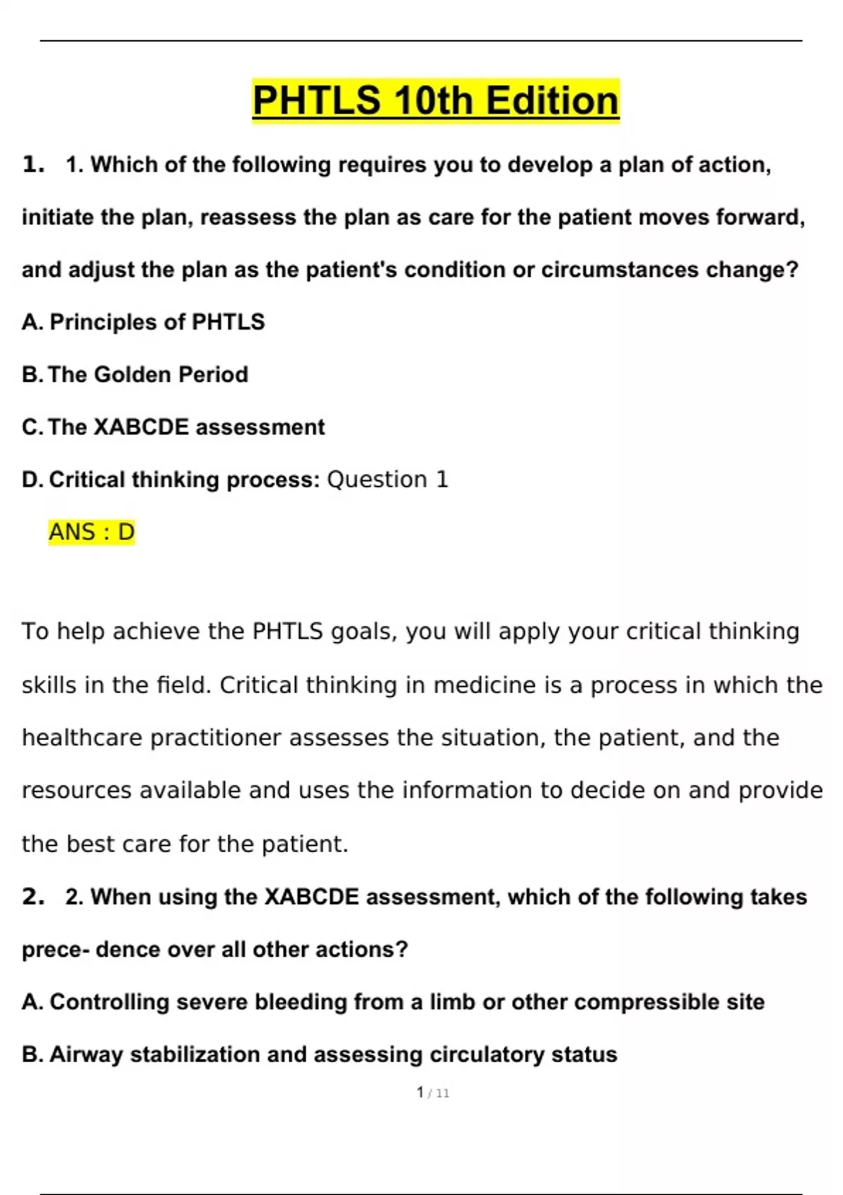 PHTLS TESTS BUNDLED PHTLS 10th Edition 100% VERIFIED ANSWERS 2024/2025 EXAM GUARANTEED PASS