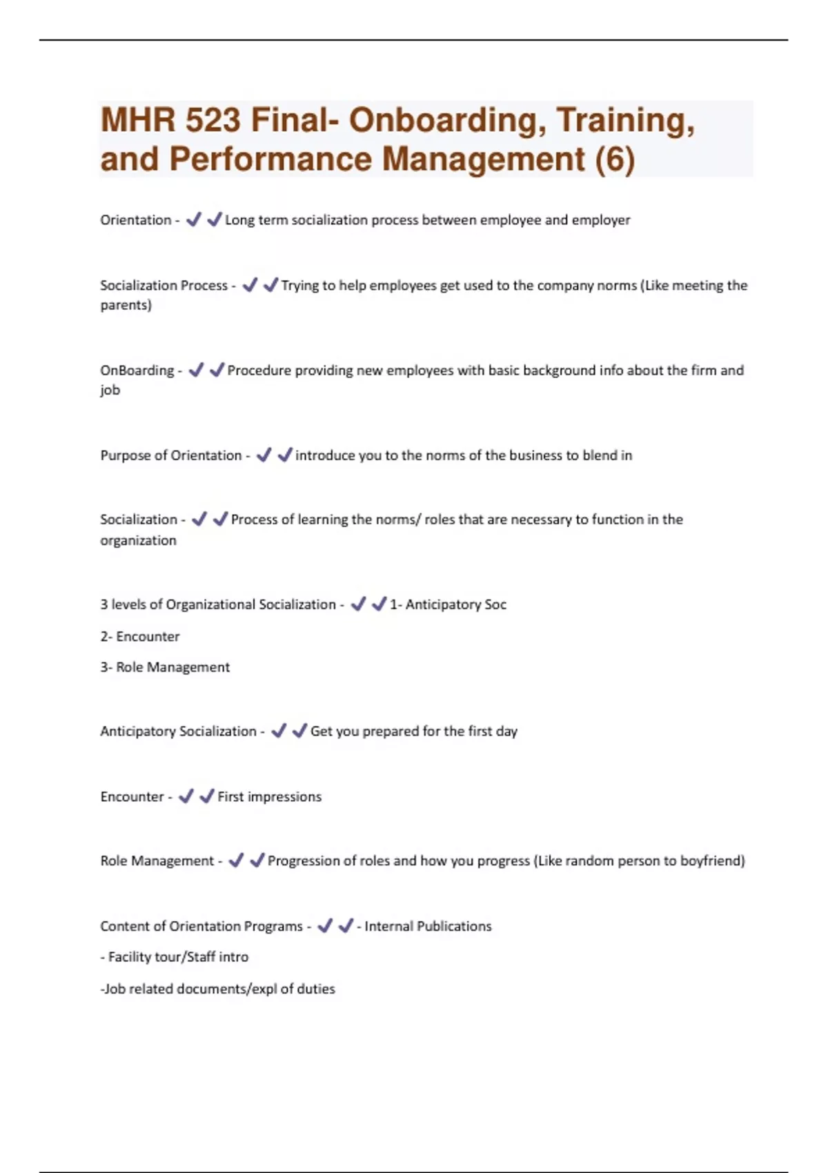 MHR 523 Final- Onboarding, Training, and Performance Management (6 Questions And Answers Graded A+