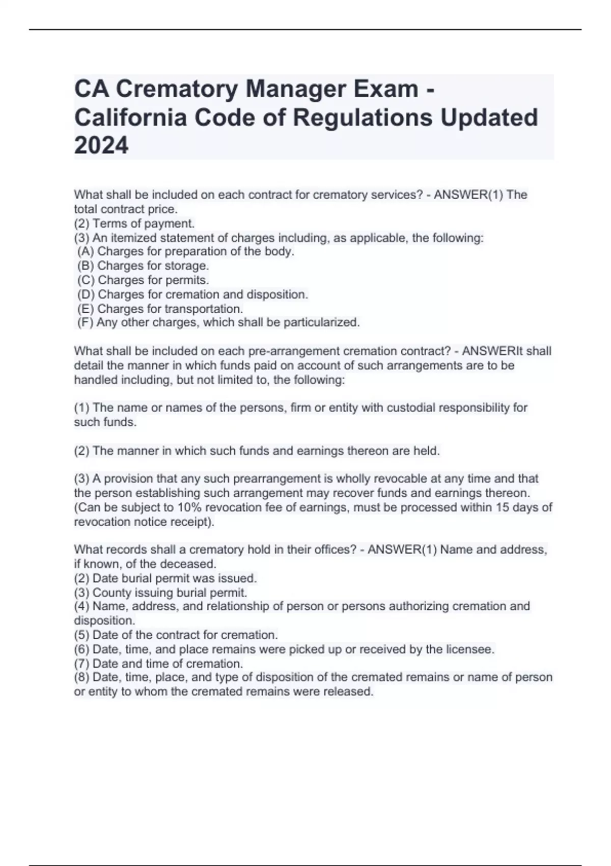 CA Funeral Law EXAM BUNDLE 2024 WITH COMPLETE SOLUTIONS