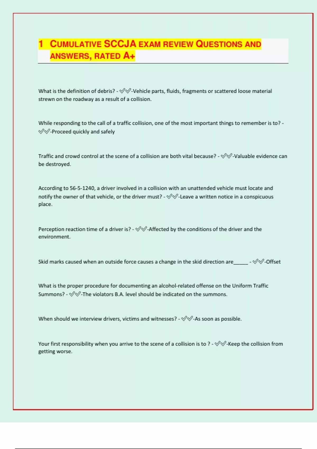 CUMULATIVE SCCJA EXAM REVIEW QUESTIONS AND ANSWERS, RATED A+| latest update 2024/25|