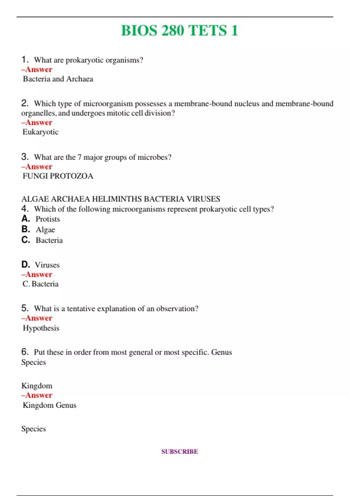 BIOS 280 - Updated 2024 -TEST 1 ,2,3 Complete Questions & Answers (Solved) 100% Correct BUNDLE
