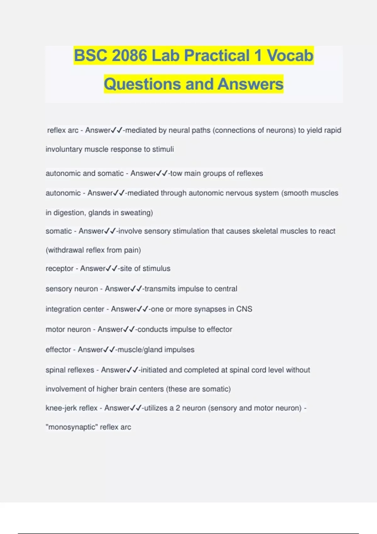BSC 2086 Exams Bundle Pack with 100% Correct Solutions | Verified and Updated | Graded A+