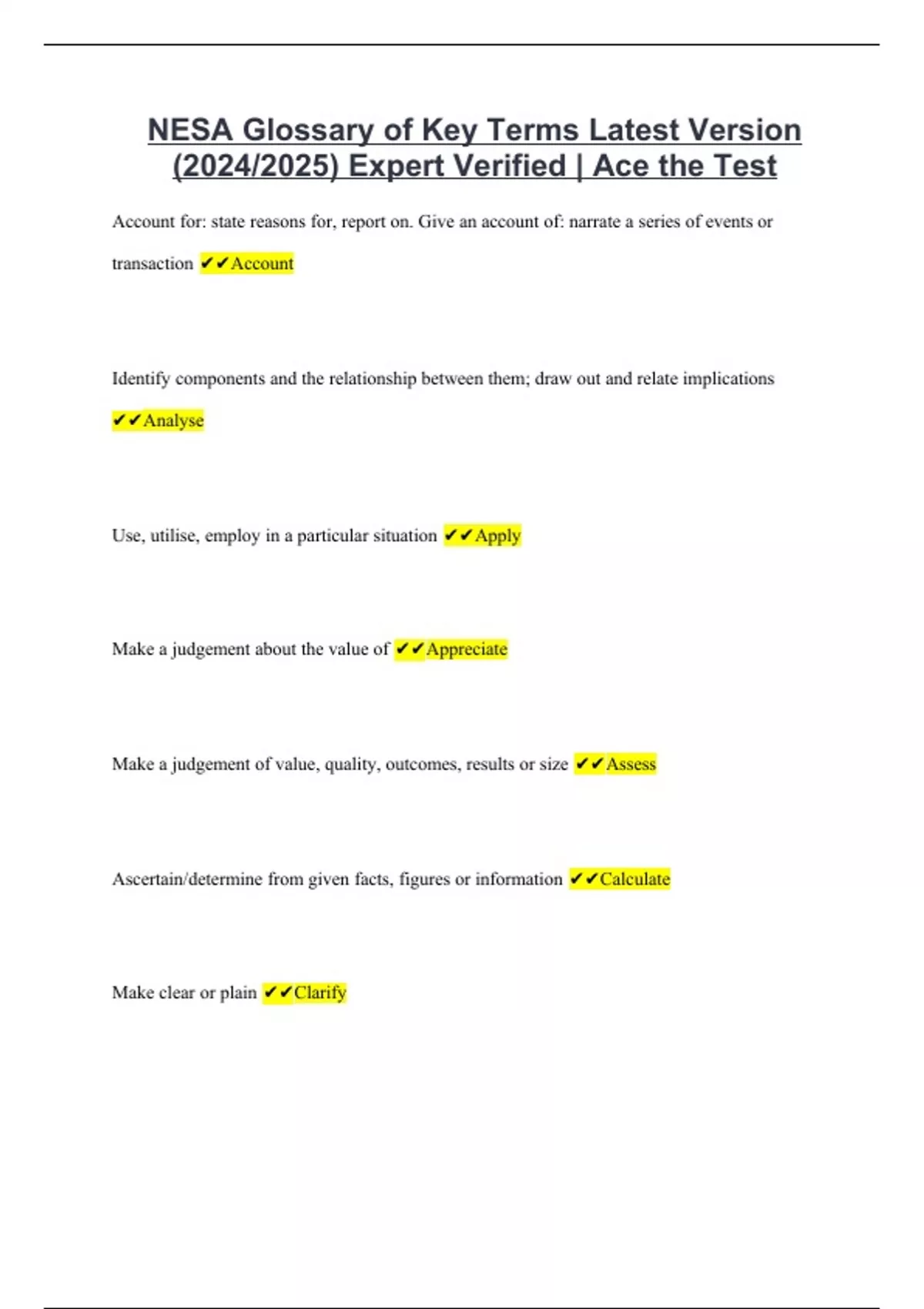 NESA Glossary of Key Terms Latest Version (2024/2025) Expert Verified | Ace the Test