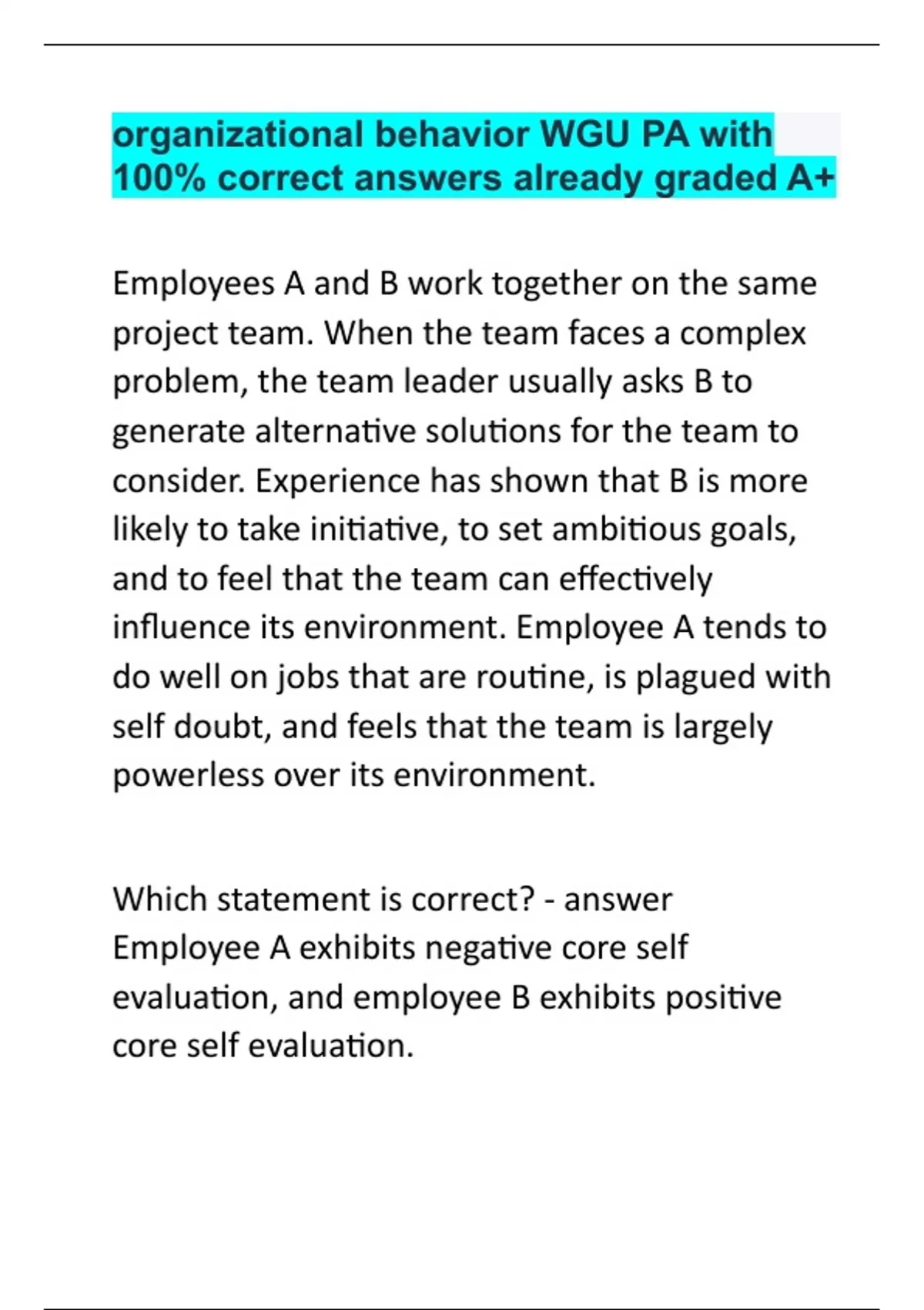 organizational behavior WGU PA with 100% correct answers already graded A+