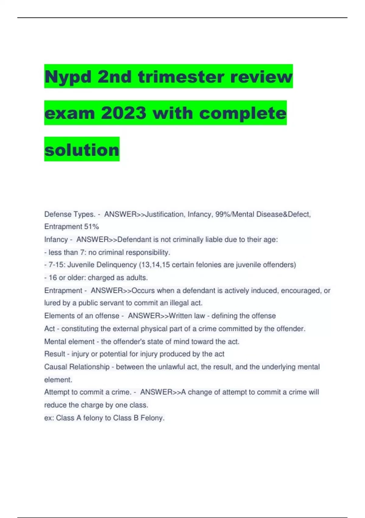 Nypd 1st & 2nd trimester review exam 2023 with complete solution