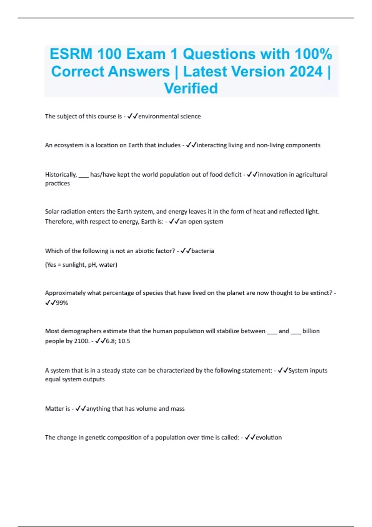 ESRM Bundled Exams Questions and Answers Latest Versions (2024/2025) Already Passed