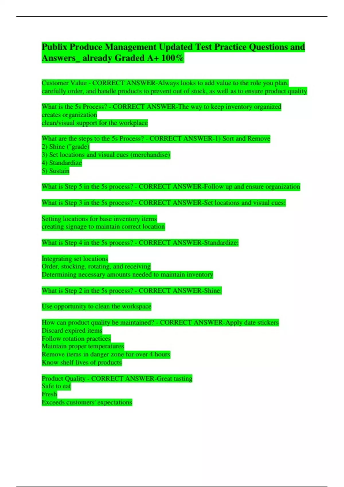 Publix Manager Test 1, Updated Correct Questions with Answers 100% A+ including other great exam papers Package deal 100% A+