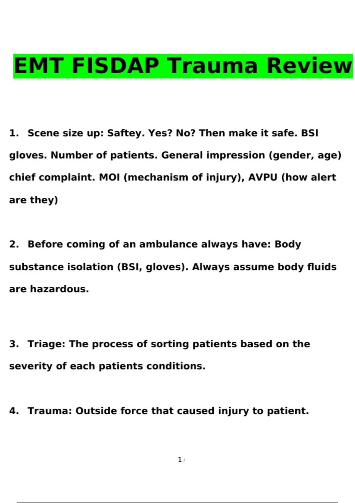 EMT FISDAP Trauma Exam STUDY BUNDLE PACK SOLUTION Questions and Answers (2024 / 2025) (Verified Answers)