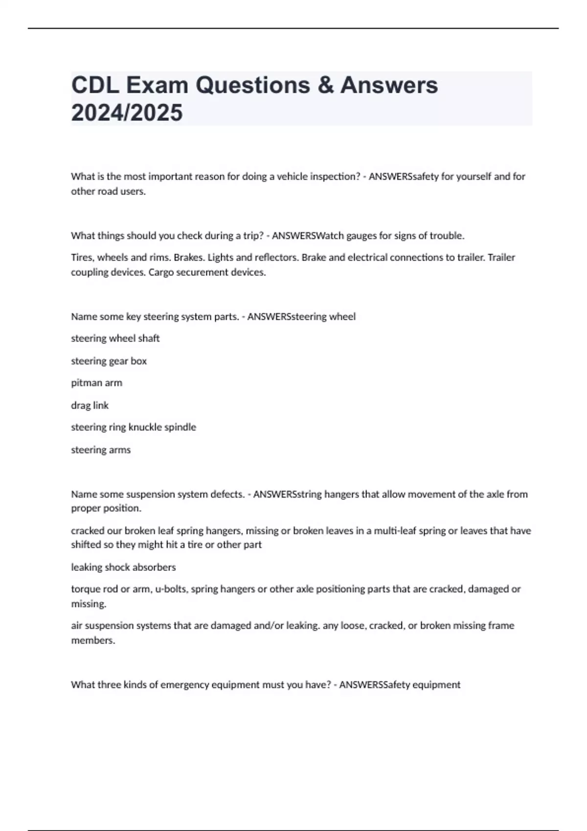 CDL Review Exam Questions & Answers 2024/2025