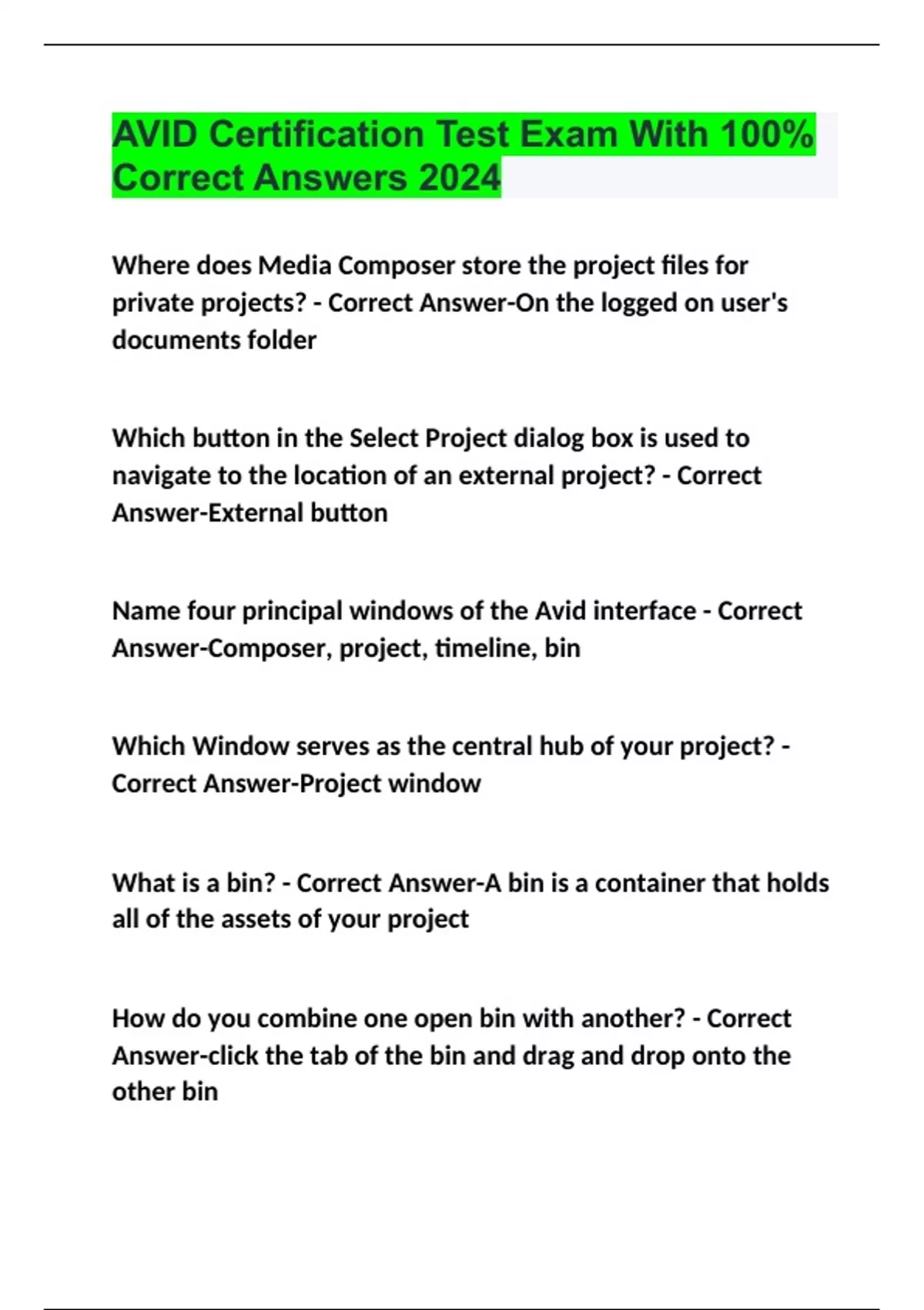 AVID Exam Review Questions With 100% Correct Answers 2024 AVID Certification Test Exam With 100% Correct Answers 2024 AVID Media Composer 101 Certification Exam Questions With 100% Correct Answers 2024 Avid Media Composer 101 Certification Exam Questions & Answers 2024 MC 110: Avid Certification Exam Questions with 100% Correct Answers | Verified