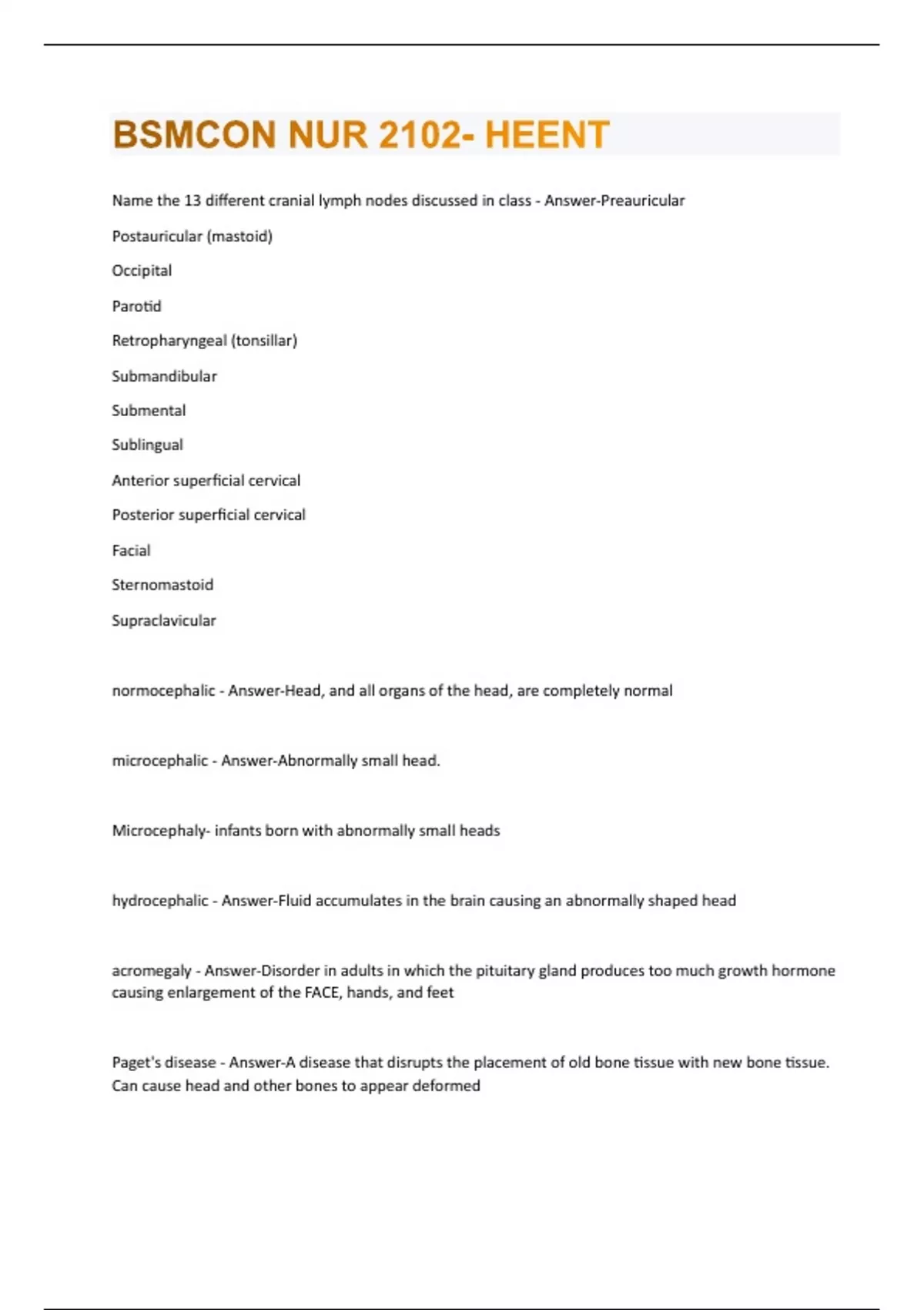 BSMCON NUR 2102- HEENT QUESTIONS WITH 100% CORRECT ANSWERS!!