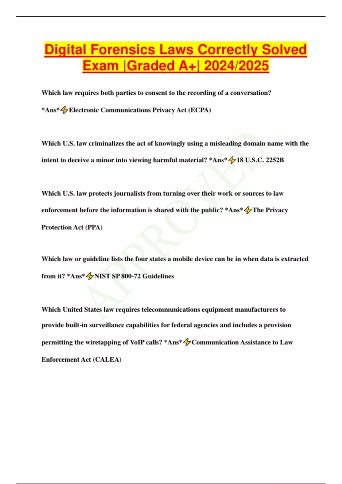 WGU Test Bank: Digital Forensics Exam |100% Correct Answers|