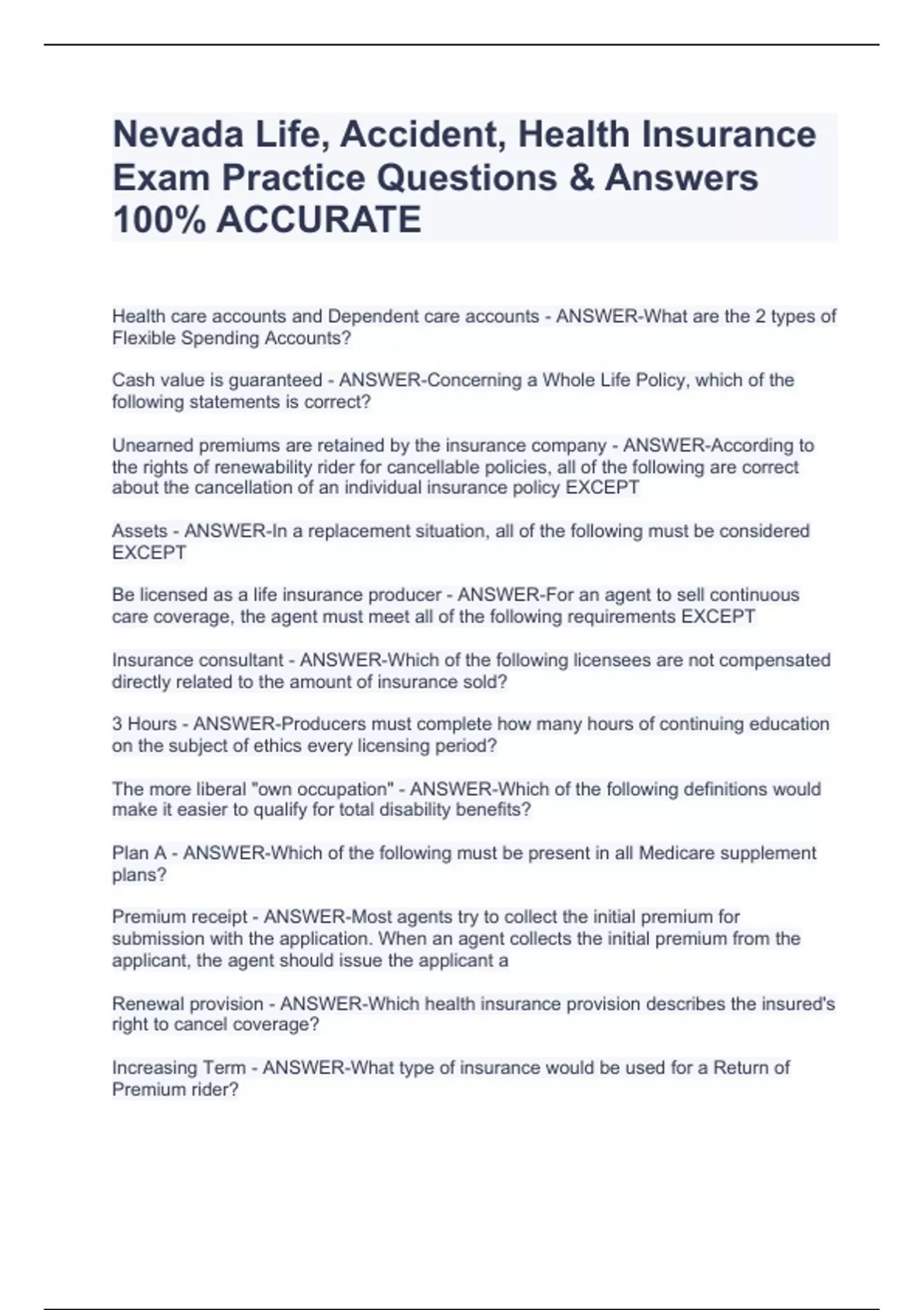 Nevada Life, Accident, Health Insurance Exam BUNDLE (PACKAGE DEAL) Questions & Answers 100% ACCURATENevada Life, Accident, Health Insurance Exam BUNDLE (PACKAGE DEAL) Questions & Answers 100% ACCURATENevada Life, Accident, Health Insurance Exam BUNDLE (PACKAGE DEAL) Questions & Answers 100% ACCURATENevada Life, Accident, Health Insurance Exam BUNDL