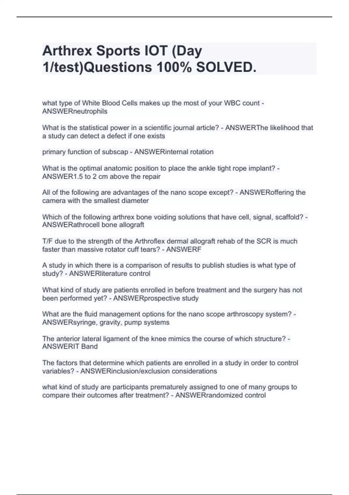 EXAM BUNDLE SPORTS IOT ARTHREX(COMPLETE PACKAGE) CORRECT Questions & Solutions(RATED A+)