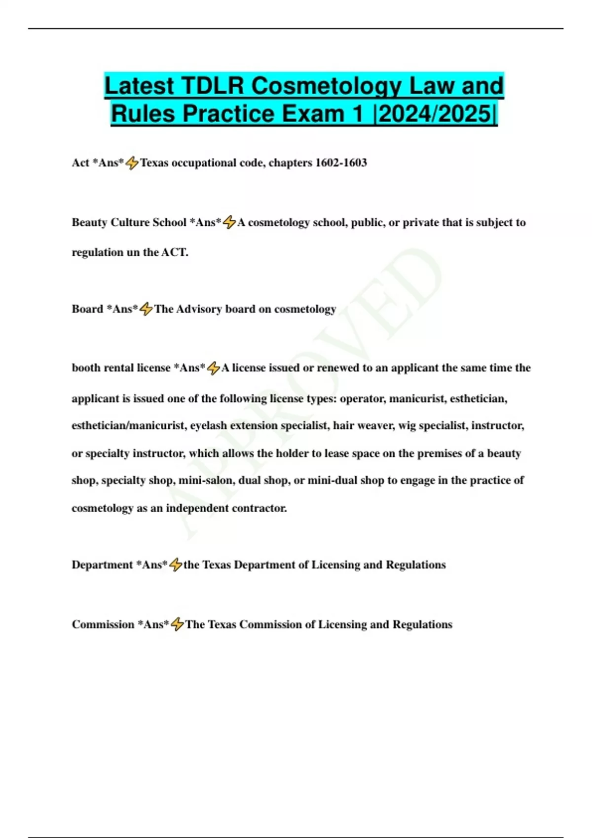 TDLR Cosmetology Exam Elaboration |COMPREHENSIVE PACKAGE DEAL|