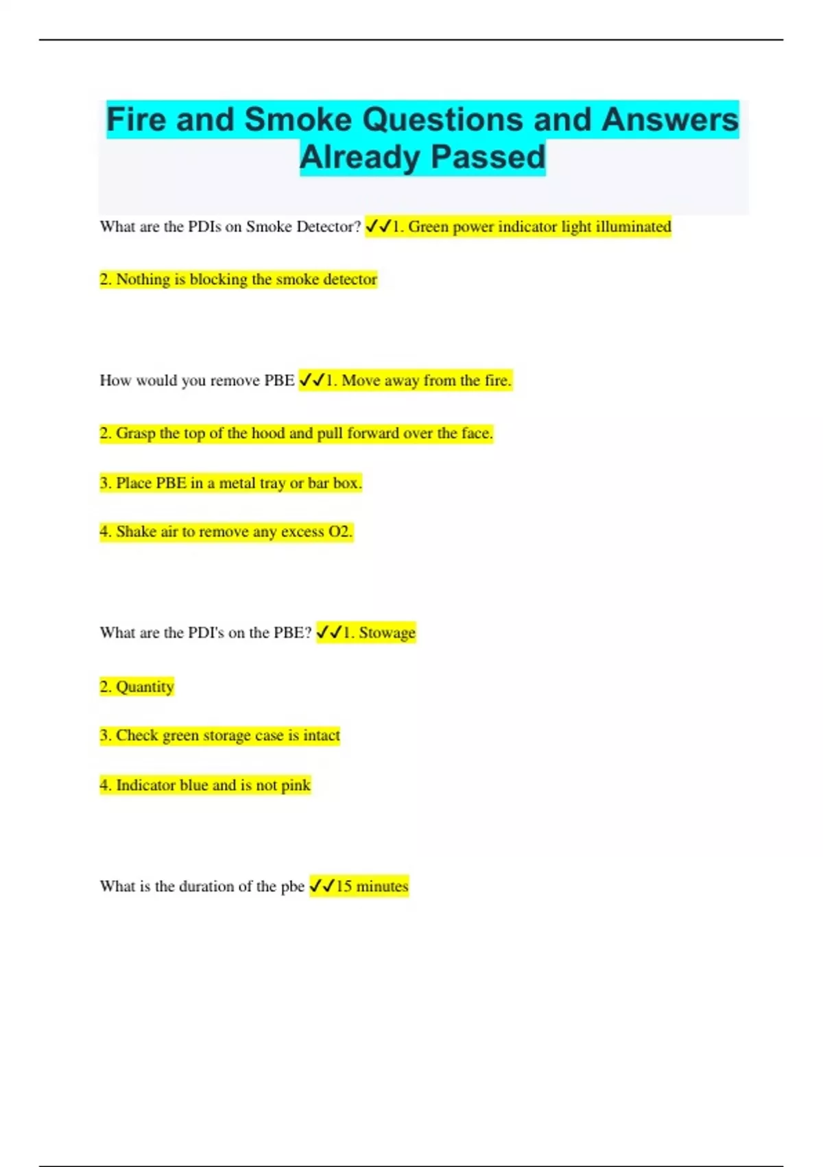 Fire and Smoke Questions and Answers Already Passed