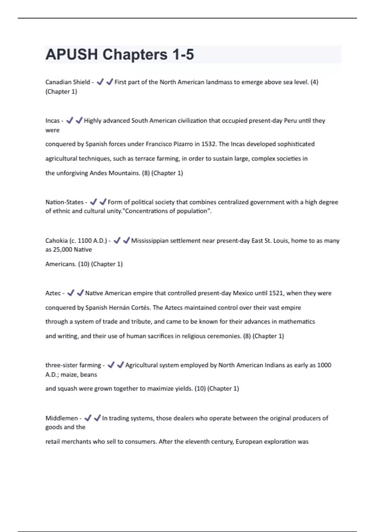 APUSH: Chapters 1-5 Questions And Answers With Verified Study Solutions