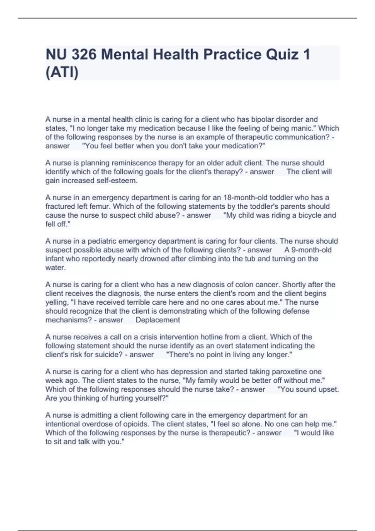 ATI PN MENTAL HEALTH EXAM TEST COMPILATION BUNDLE 2024