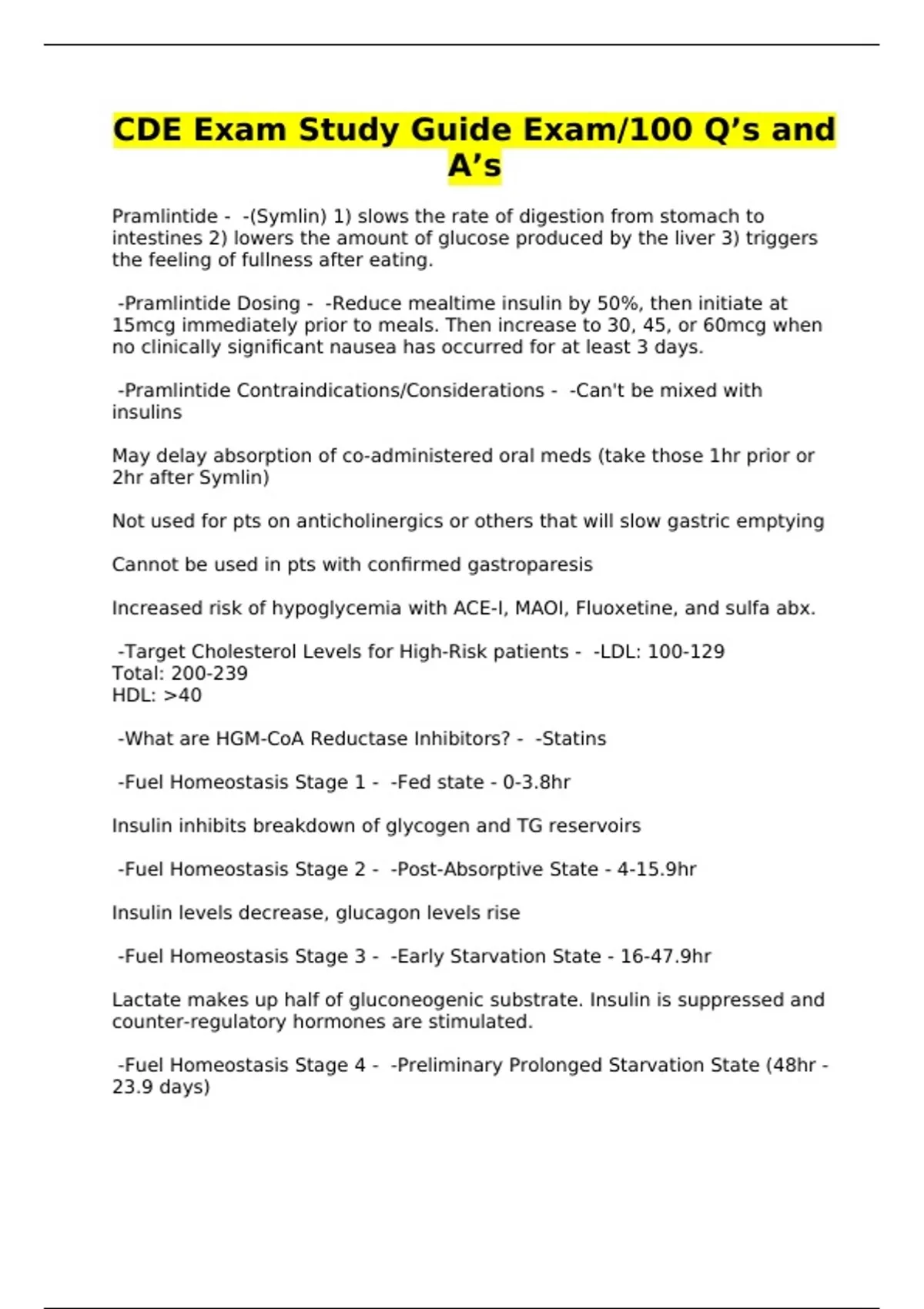 CDE Exam Study Guide Exam/100 Q’s and A’s