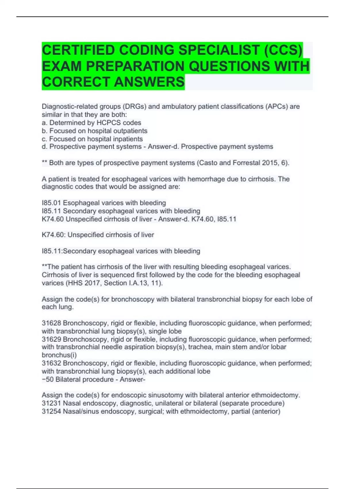 AHIMA CCS ACTUAL EXAM QUESTIONS WITH COMPLETE ANSWERS 2 Exam (elaborations) AHIMA CCS EXAM QUESTIONS WITH CORRECT ANSWERS 3 Exam (elaborations) CCS ACTUAL EXAM PREP QUESTIONS WITH CORRECT ANSWER 4 Exam (elaborations) CCS ACTUAL EXAM QUESTIONS WITH COMPLETE ANSWERS 5 Exam (elaborations) CCS ACTUAL STUDY GUIDE Exam QUESTIONS AND ANSWERS 6 Exam (