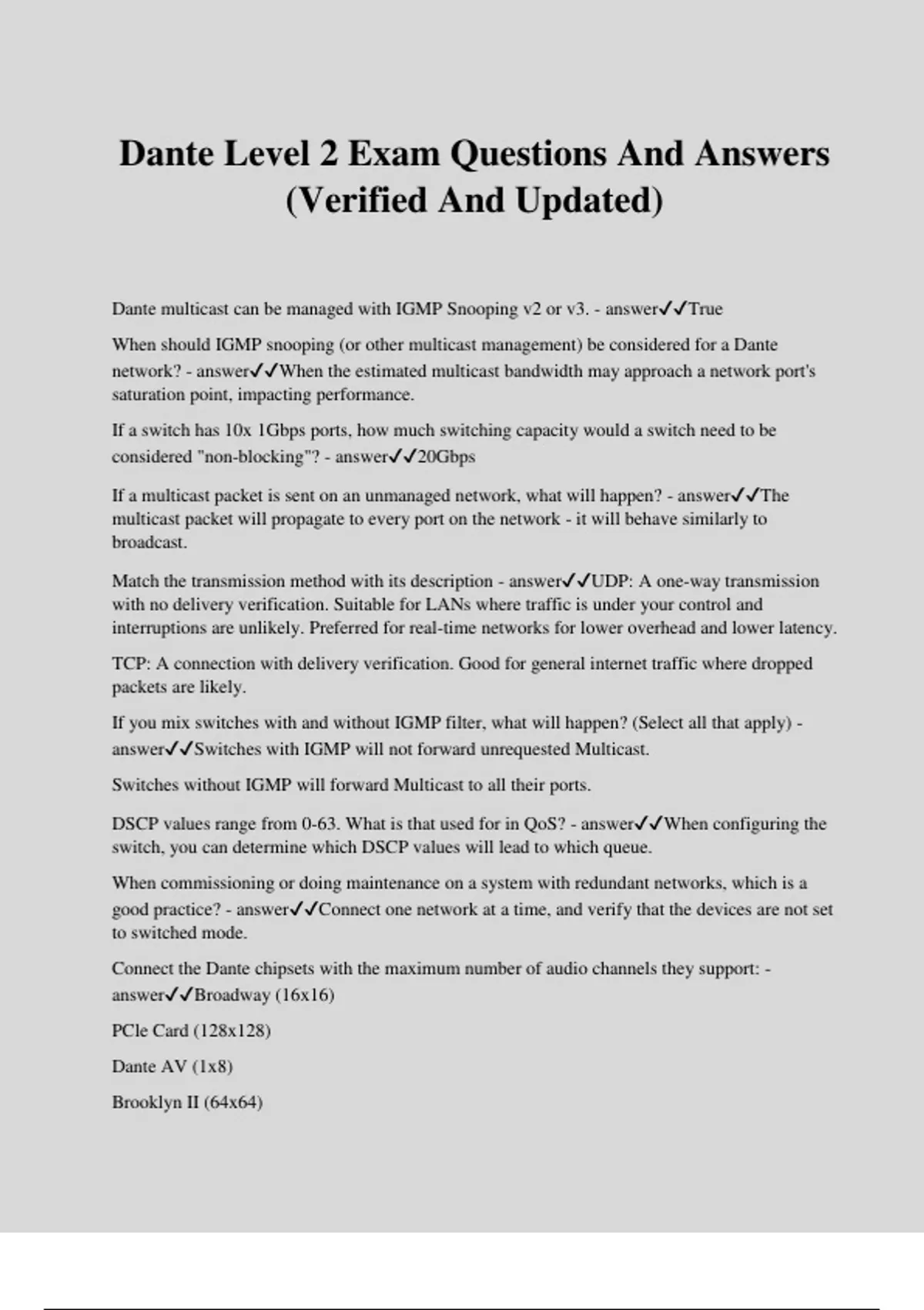 Dante Certification Level 2 Exam Questions And Answers 100% Verified