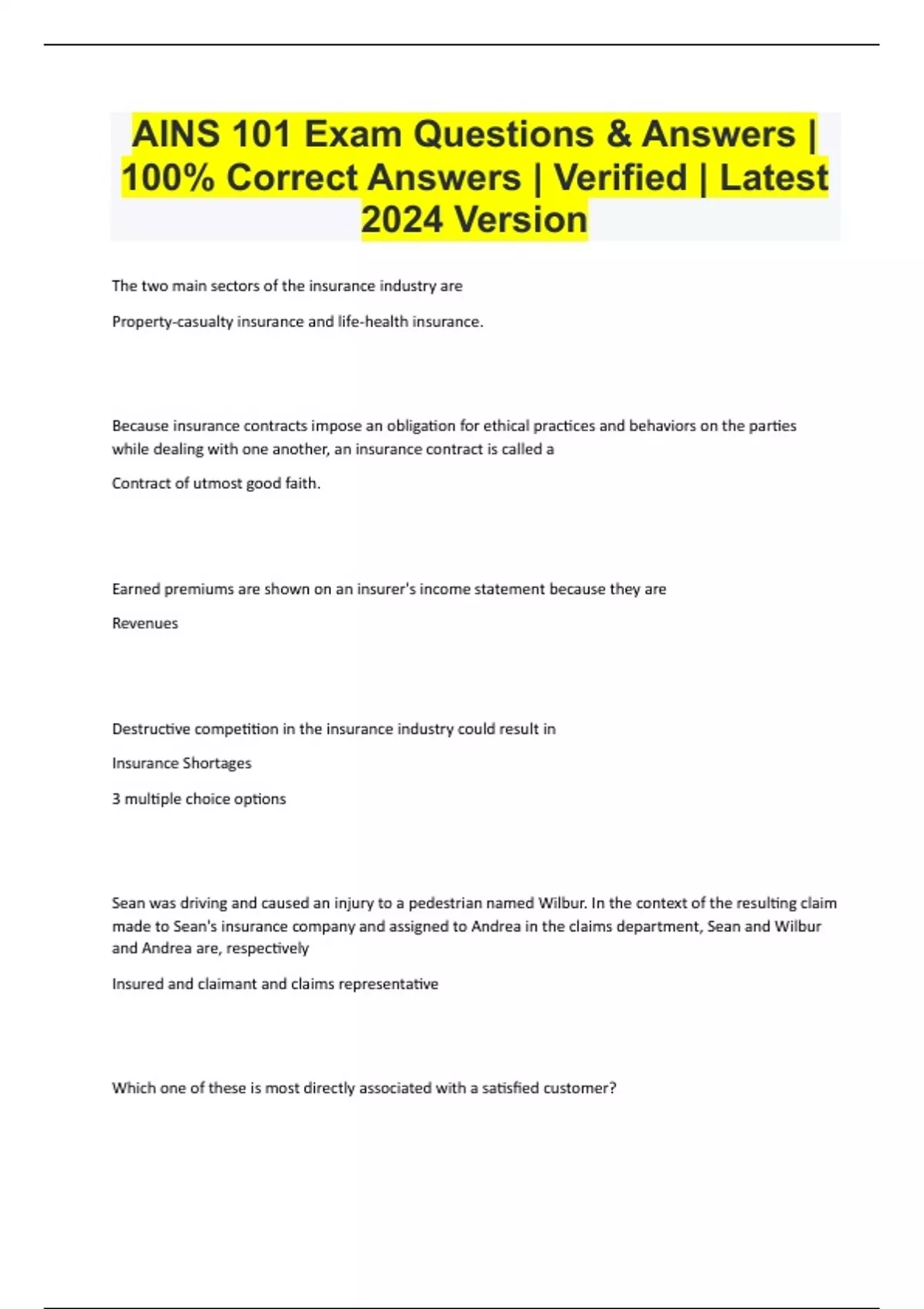 AINS 101 Exam Questions & Answers | 100% Correct Answers | Verified | Latest 2024 Version